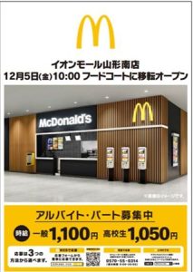 いつもマクドナルドイオンモール山形南店をご利用いただきありがとうございます。