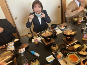 高級米沢牛のすき焼きを堪能しながら、参加者全員が和気あいあいと歓談いたしました。 厚みのあるお肉なのに、柔らかくてとろけるような舌触り… そして、すき焼きと言えば白米。美味しいお米も沢山おかわりをしてしまい、お腹いっぱいになりました。
